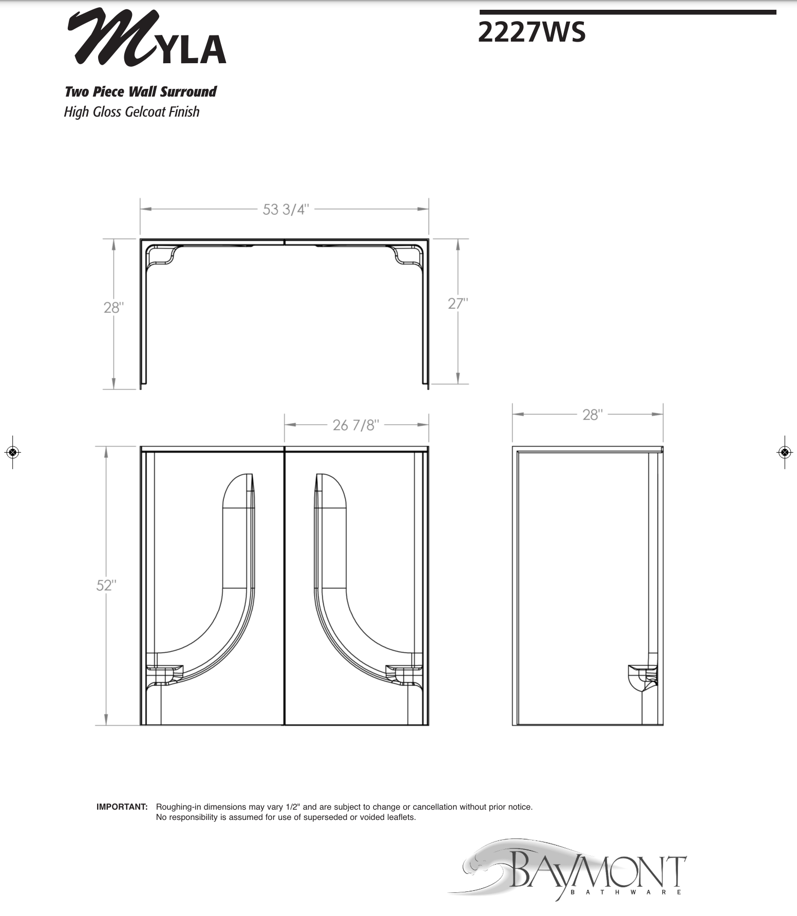- Dimensions: 53 3/4″ x 27 1/2″ x 57″ with flange