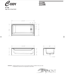 - Dimensions: 53 3/4″ x 28 1/4″ x 17″ with flange