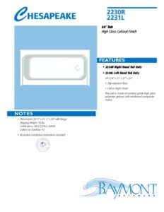 - Dimensions: 59 3/4″ x 31 1/2″ x 22″ with flange