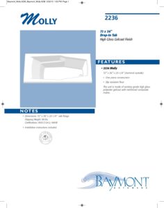 This unit made of sanitary grade high gloss polyester gelcoat with reinforced composite matrix.