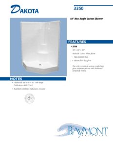 This unit is made of sanitary grade high gloss polyester gelcoat with reinforced composite matrix.