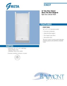 - Dimensions: 36″ x 37″ x 76 1/2″ with flange