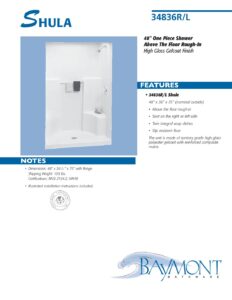- Dimensions: 48″ x 36 1/8″ x 75″ with flange