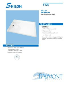 This unit is made of sanitary grade high gloss polyester gelcoat with reinforced composite matrix.