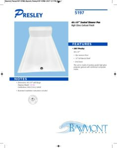 - Certifications: ANSI Z124.2; NAHB