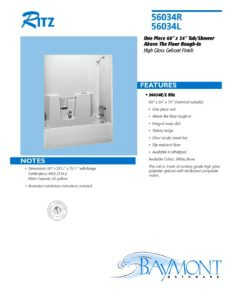 - Dimensions: 60″ x 33 5/8″ x 75 1/4″ with flange