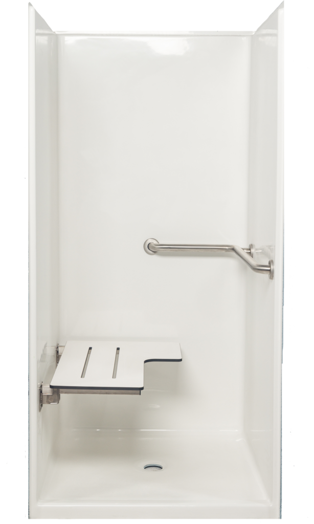 - On Model 73838S the factory supplied components to be included are one stainless steel wrap around grab bar and a fold up seat.
